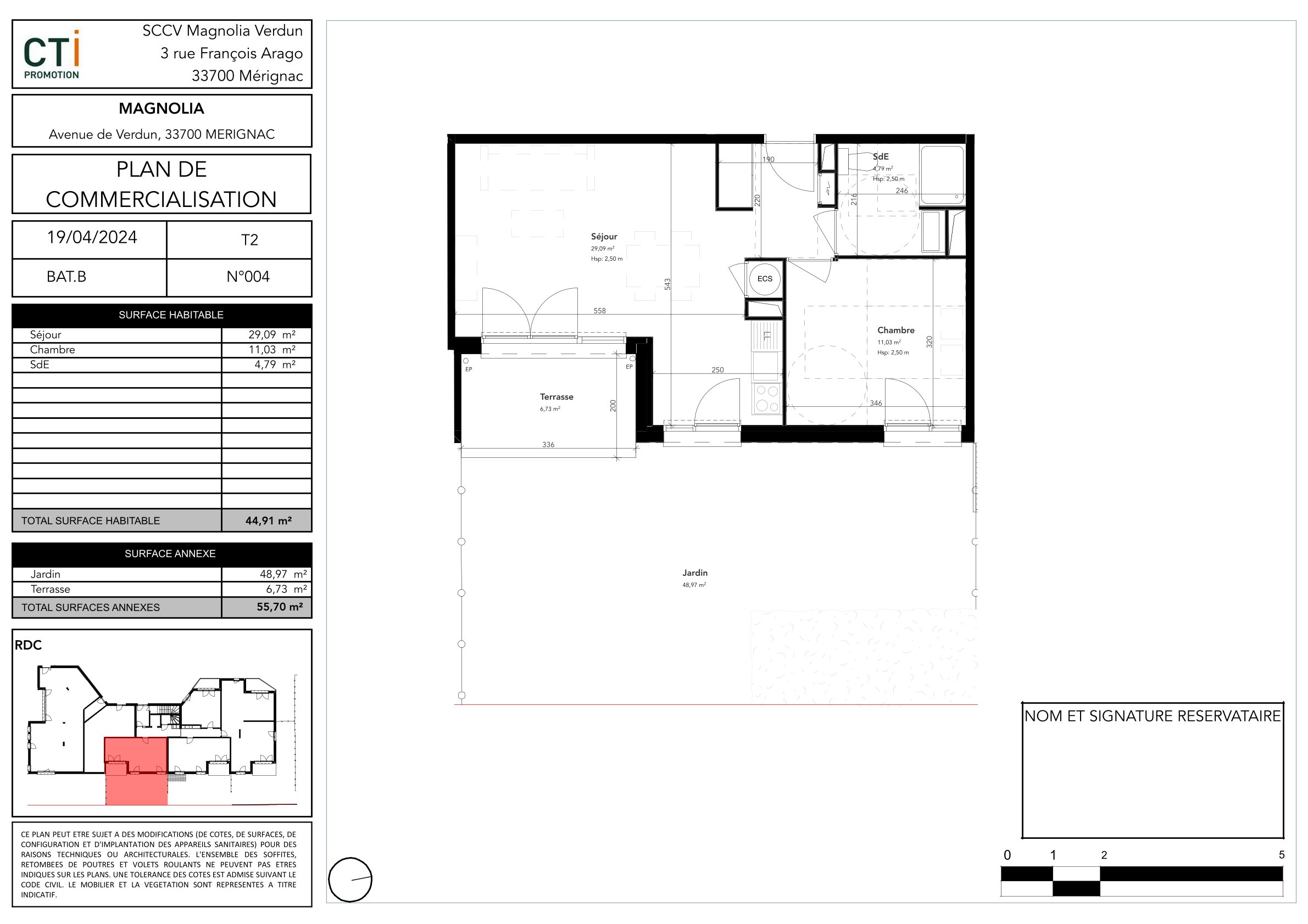 | B 004_T2 | 44.81m² | RDC | 275 000€ | Orientation EST - Terrasse de 6,73m² Jardin de 48.97m², une place de parking | |