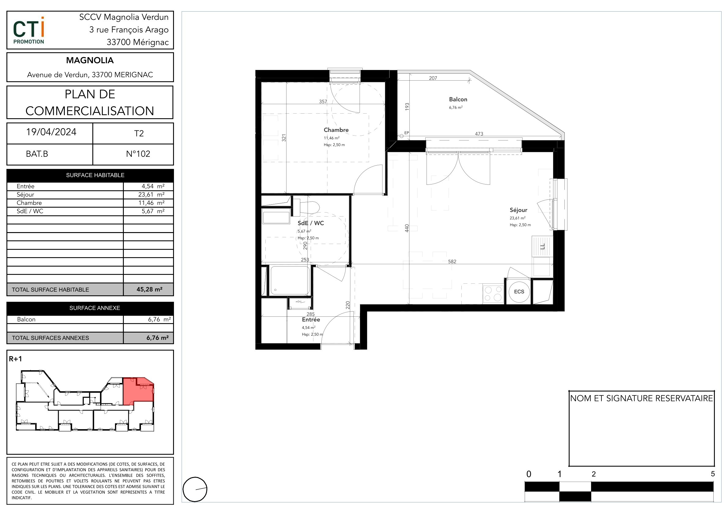 | B 102_T2 | 45.28m² | 1er | 270 000€ | Orientation NORD OUEST - Balcon de 6,76m², une place de parking | |