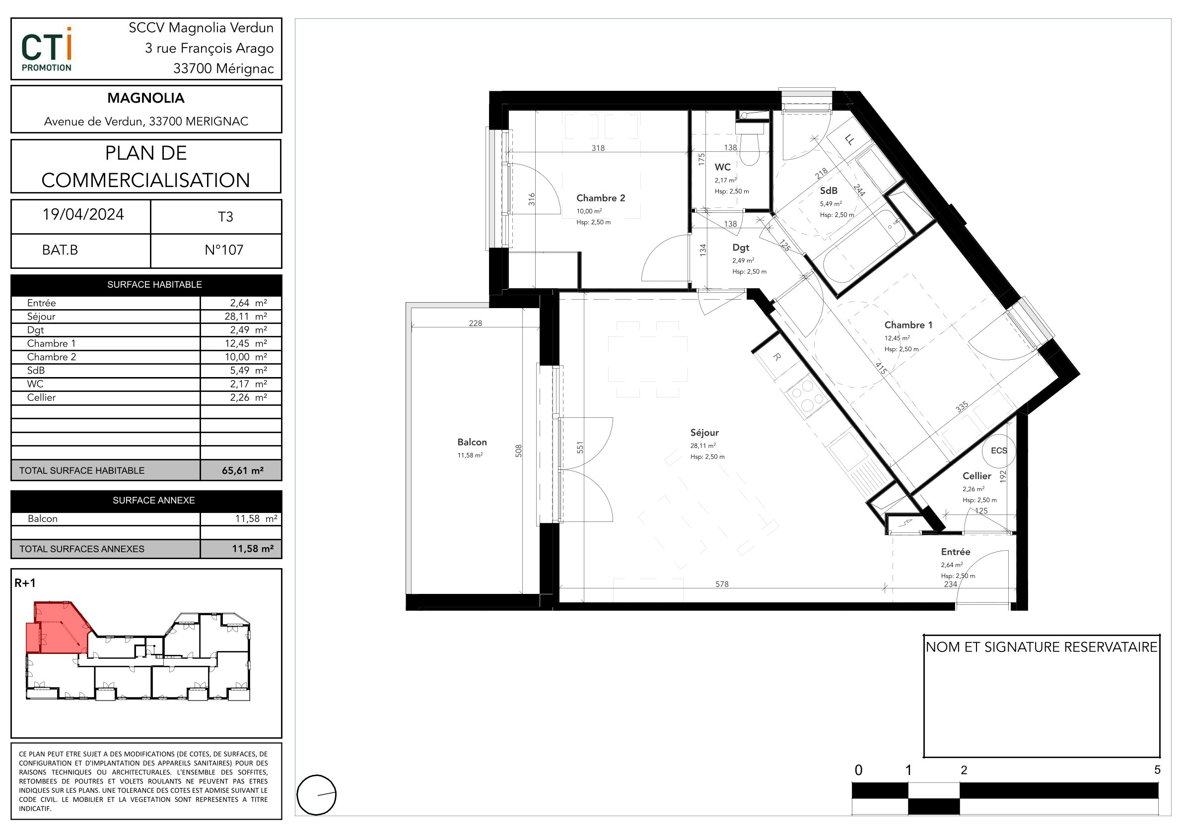 | B 107_T3 | 65.61m² | 1er | 370 000€ | Orientation SUD OUEST - Balcon de 11,58m², deux places de parking | |